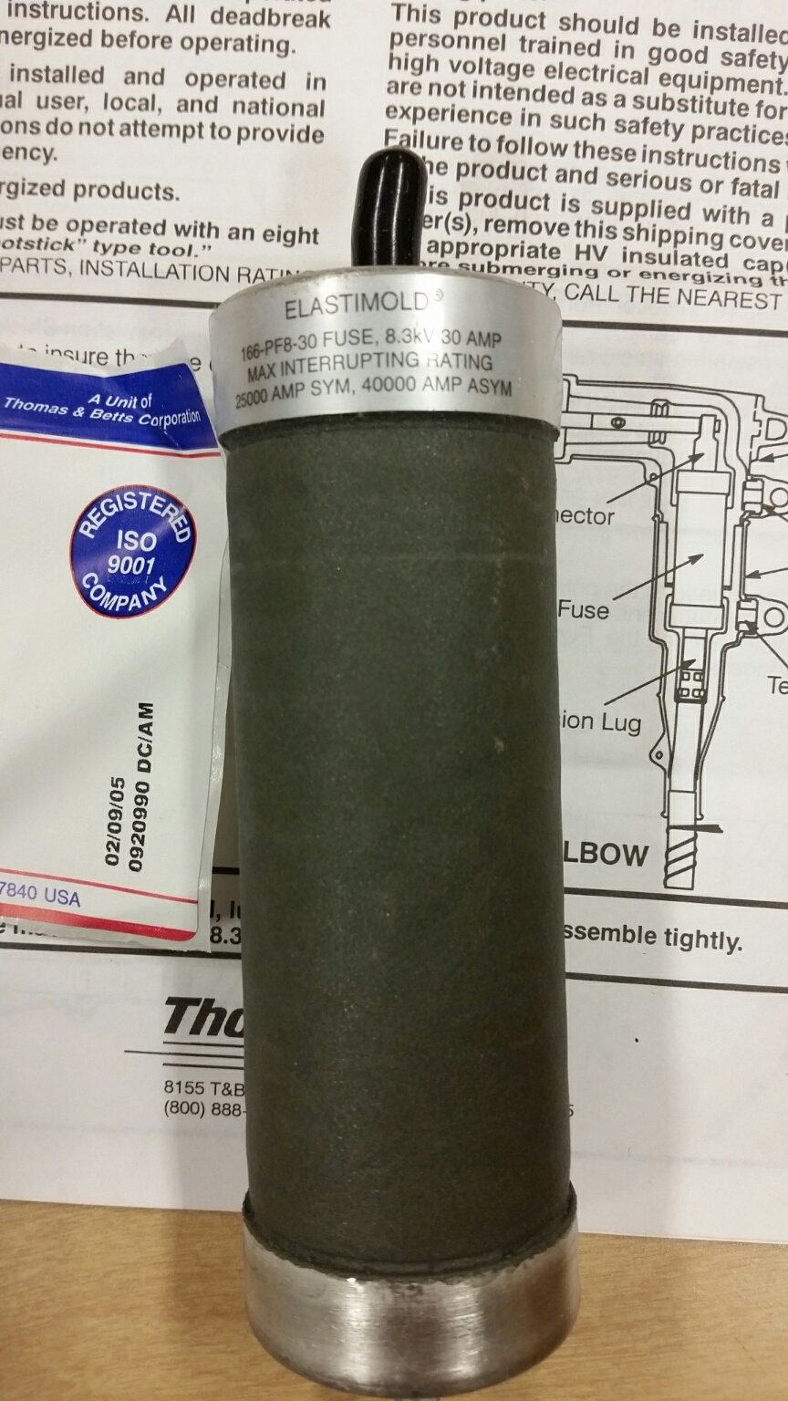 Oh, we have a few fused elbows around here too. Plus some old Joslyn fuses you plug on to the 200 bushings then plug a regular 200A loadbreak elbow on to. They don't make that type anymore but we still have several in service. Fortunately we have a good stock of spare on hand. See pics of both types I just happen to have on hand. Attachment: