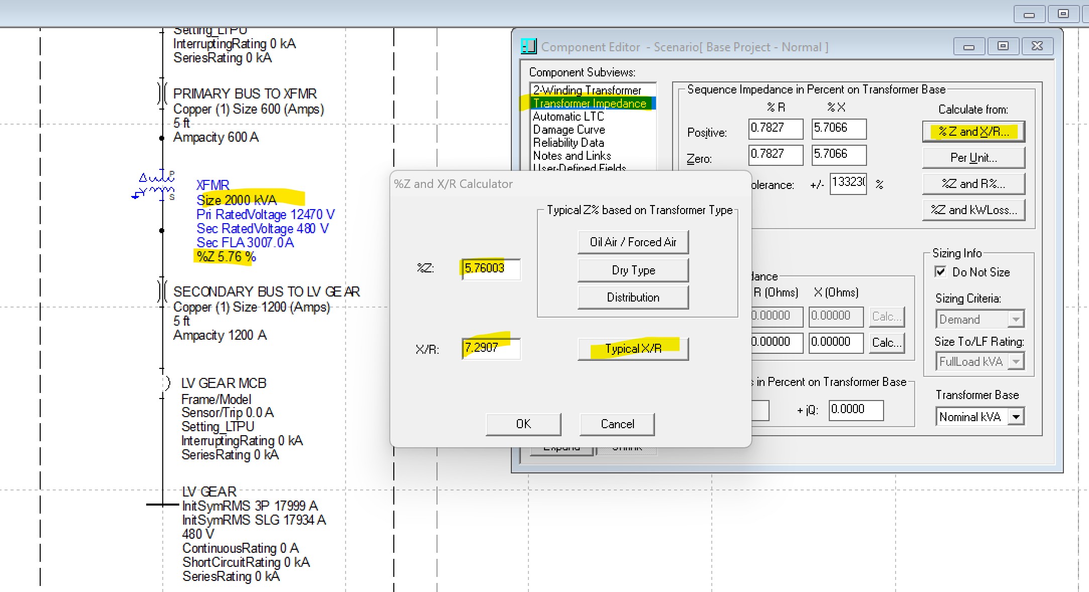 "An X/R ratio of 7.29092 was used to model the 2000 kVA utility service