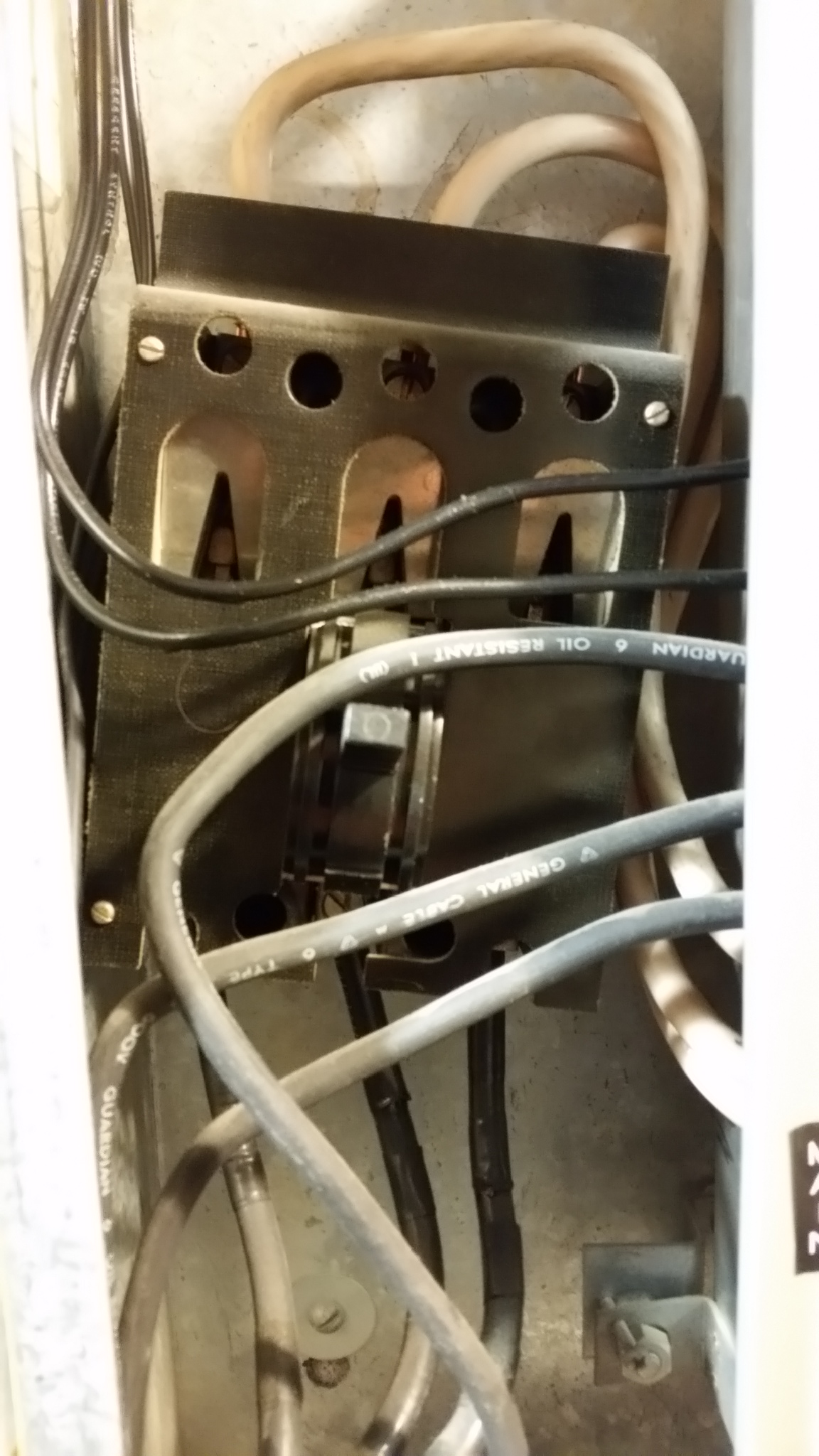 Not in the photo: 4/0 feeder spliced inside an adjacent panel with #2. #2 goes through wireway to this 200A "gutter mounted" MCB which had been removed from the adjacent panel. Adjacent panel was re-fed from a different source. Sheesh!