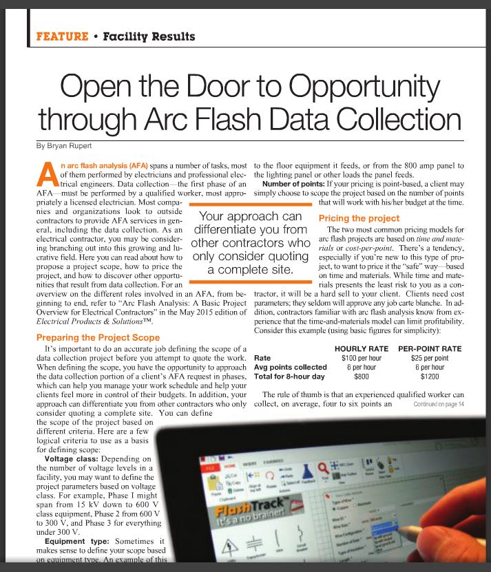 Enclosed is a pdf or an article that might help you est. the data collection process. It was published last Mo. in Electrical Products & Solutions mag.